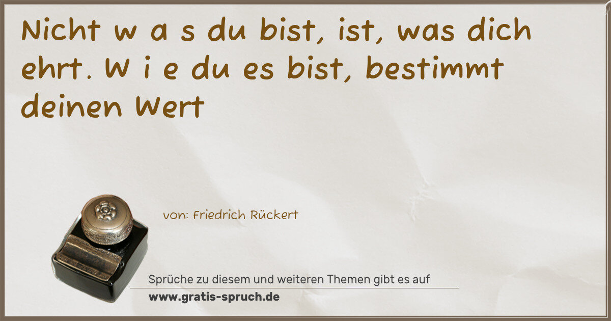 Nicht w a s du bist, ist, was dich ehrt. W i e du es bist, bestimmt deinen Wert