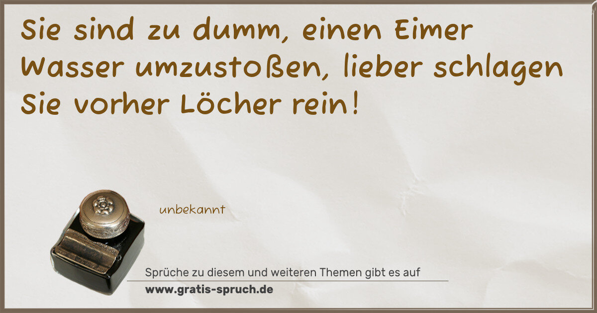 Sie sind zu dumm, einen Eimer Wasser umzustoßen, lieber schlagen Sie vorher Löcher rein!