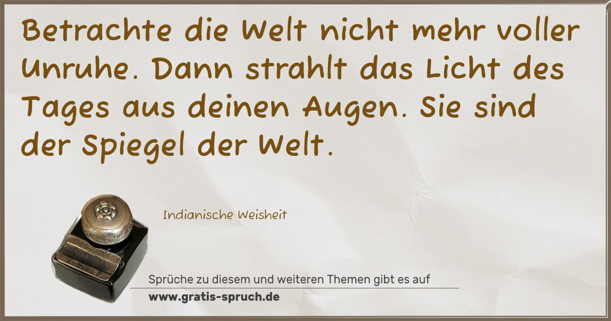 Betrachte die Welt nicht mehr voller Unruhe. Dann strahlt das Licht des Tages aus deinen Augen. Sie sind der Spiegel der Welt.