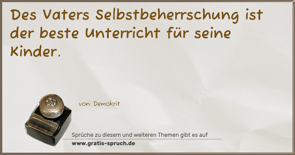 Des Vaters Selbstbeherrschung ist der beste Unterricht für seine Kinder.