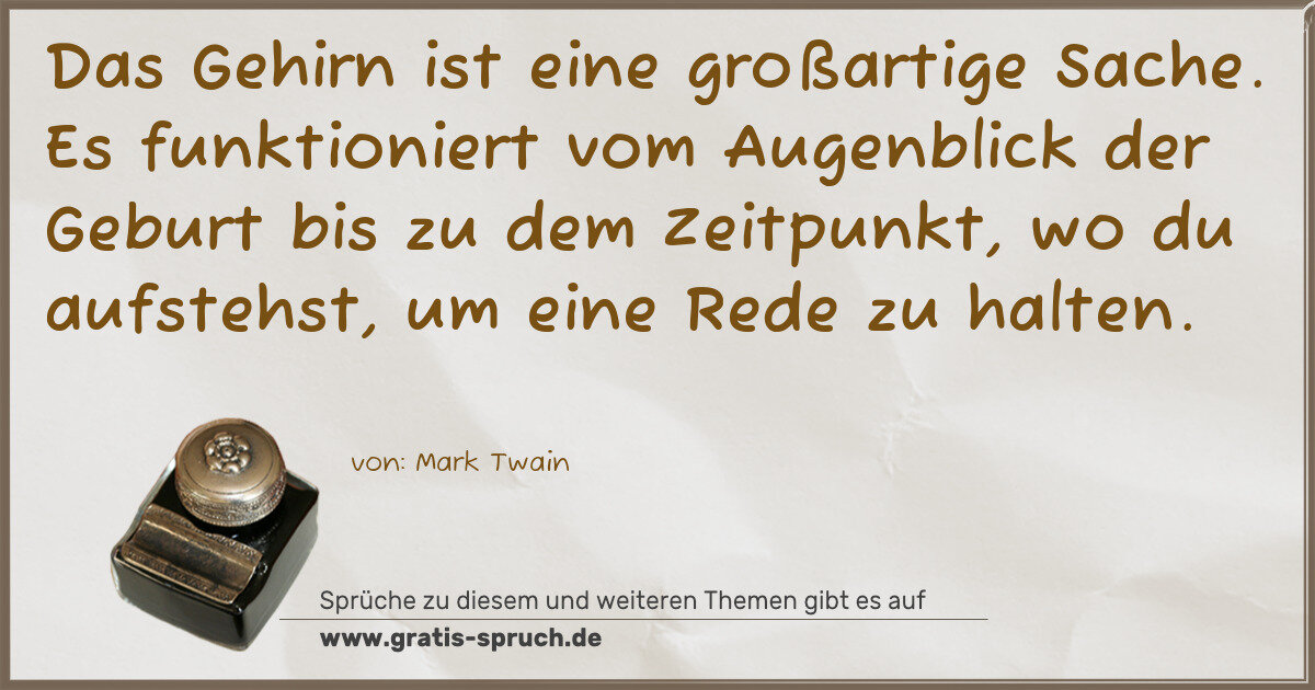 Das Gehirn ist eine großartige Sache. Es funktioniert vom Augenblick der Geburt bis zu dem Zeitpunkt, wo du aufstehst, um eine Rede zu halten.