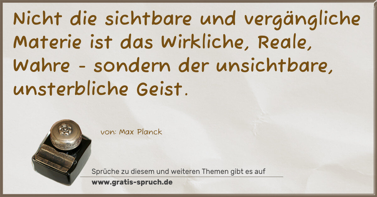 Nicht die sichtbare und vergängliche Materie ist das Wirkliche, Reale, Wahre - sondern der unsichtbare, unsterbliche Geist.
