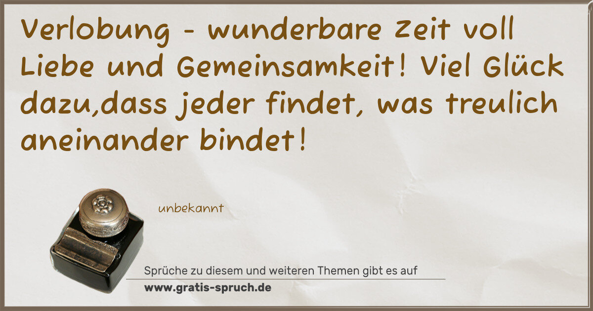 Verlobung - wunderbare Zeit voll Liebe und Gemeinsamkeit! Viel Glück dazu,dass jeder findet, was treulich aneinander bindet!