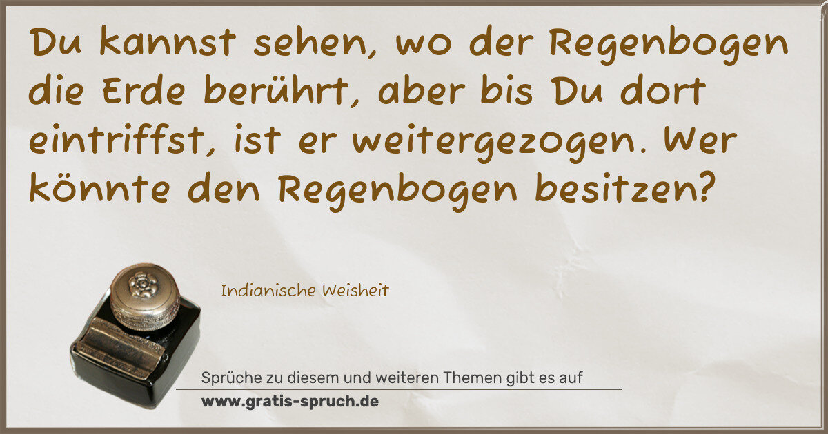 Du kannst sehen, wo der Regenbogen die Erde berührt, aber bis Du dort eintriffst, ist er weitergezogen. Wer könnte den Regenbogen besitzen?