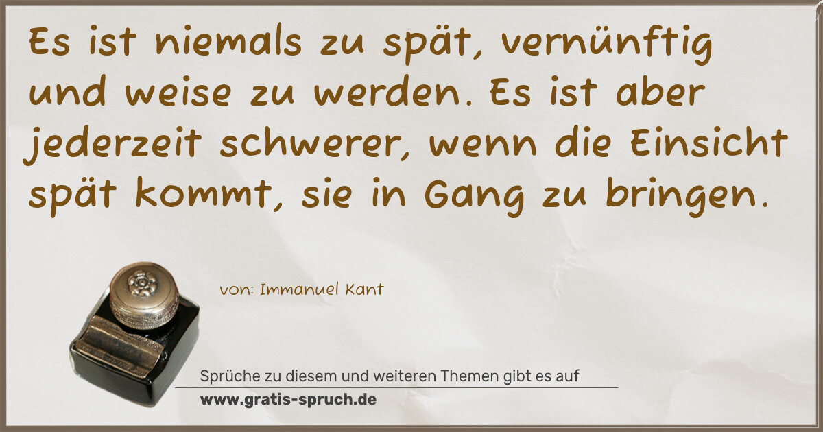 Es ist niemals zu spät, vernünftig und weise zu werden. Es ist aber jederzeit schwerer, wenn die Einsicht spät kommt, sie in Gang zu bringen.