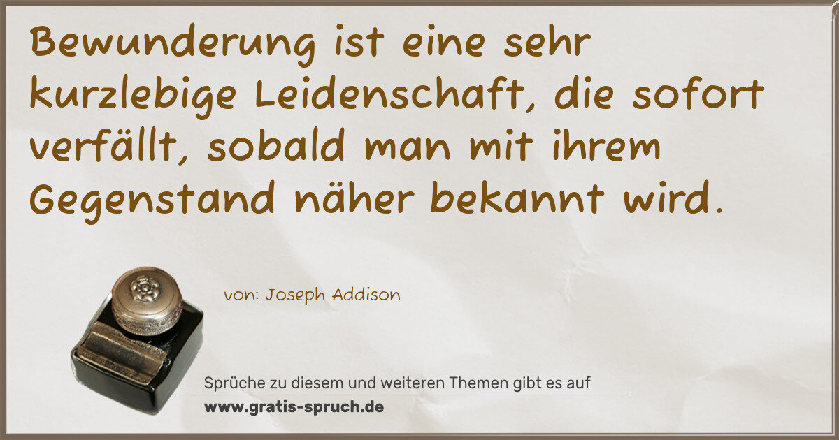 Bewunderung ist eine sehr kurzlebige Leidenschaft, die sofort verfällt, sobald man mit ihrem Gegenstand näher bekannt wird.