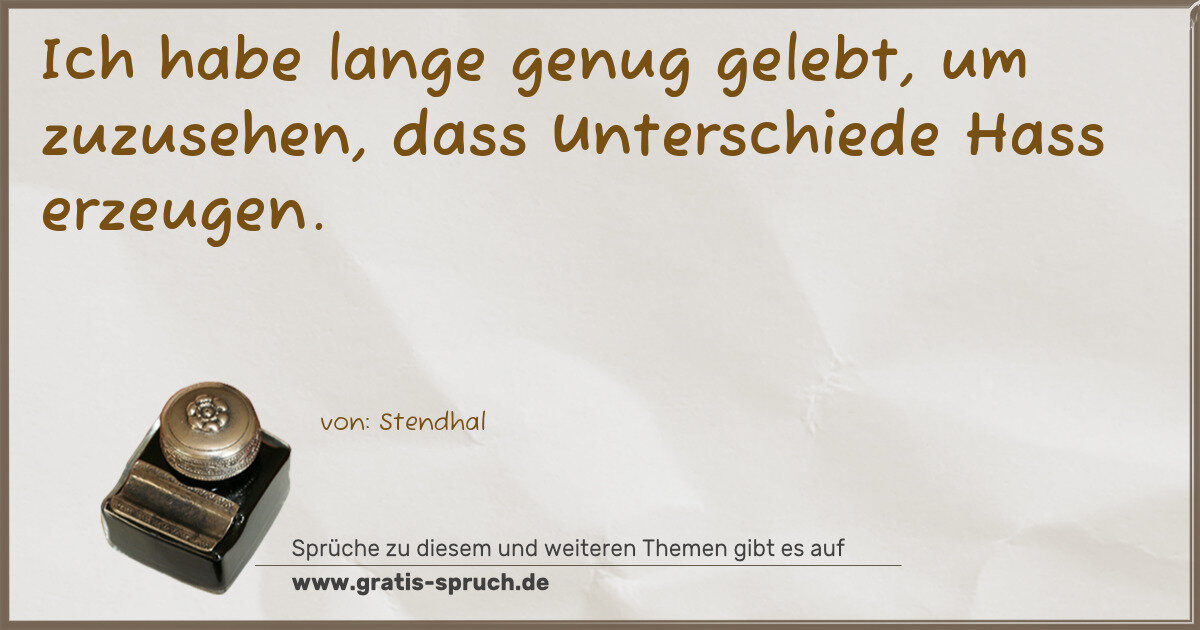 Ich habe lange genug gelebt, um zuzusehen, dass Unterschiede Hass erzeugen.