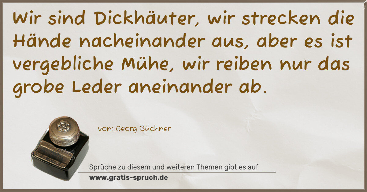 Wir sind Dickhäuter, wir strecken die Hände nacheinander aus, aber es ist vergebliche Mühe, wir reiben nur das grobe Leder aneinander ab.