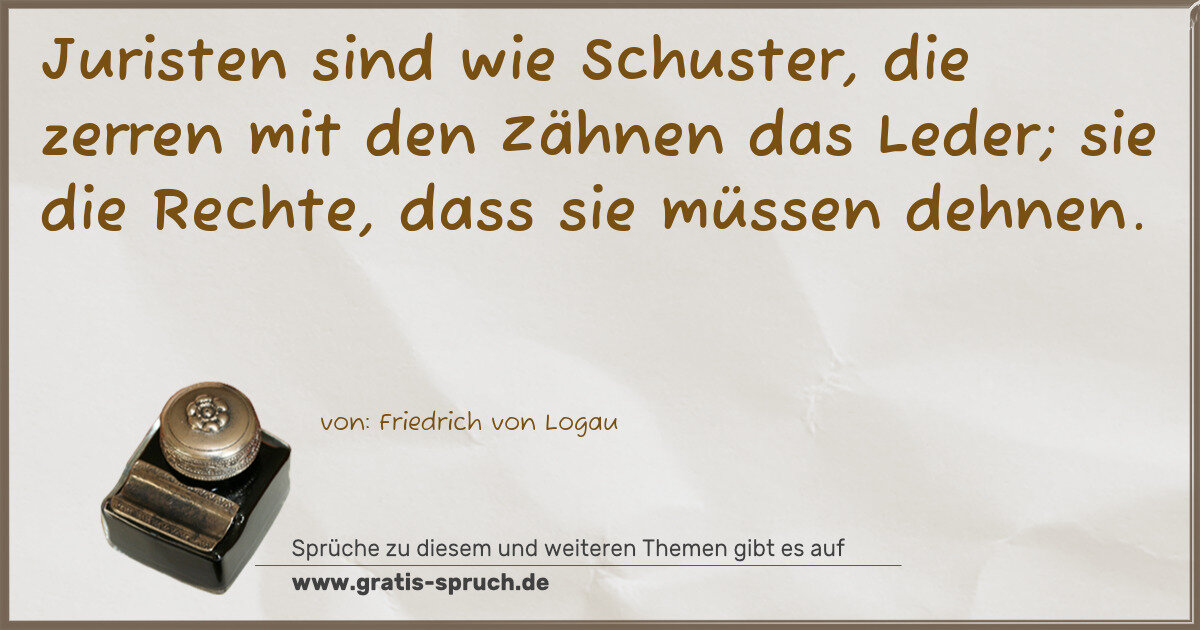 Juristen sind wie Schuster, die zerren mit den Zähnen das Leder; sie die Rechte, dass sie müssen dehnen.
