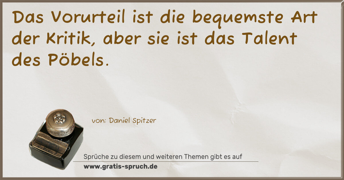 Das Vorurteil ist die bequemste Art der Kritik, aber sie ist das Talent des Pöbels.
