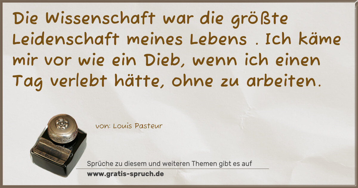 Die Wissenschaft war die größte Leidenschaft meines Lebens . Ich käme mir vor wie ein Dieb, wenn ich einen Tag verlebt hätte, ohne zu arbeiten.