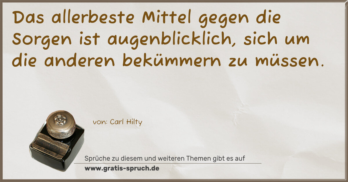 Das allerbeste Mittel gegen die Sorgen ist augenblicklich, sich um die anderen bekümmern zu müssen.