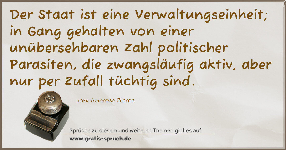 Der Staat ist eine Verwaltungseinheit; in Gang gehalten von einer unübersehbaren Zahl politischer Parasiten, die zwangsläufig aktiv, aber nur per Zufall tüchtig sind.