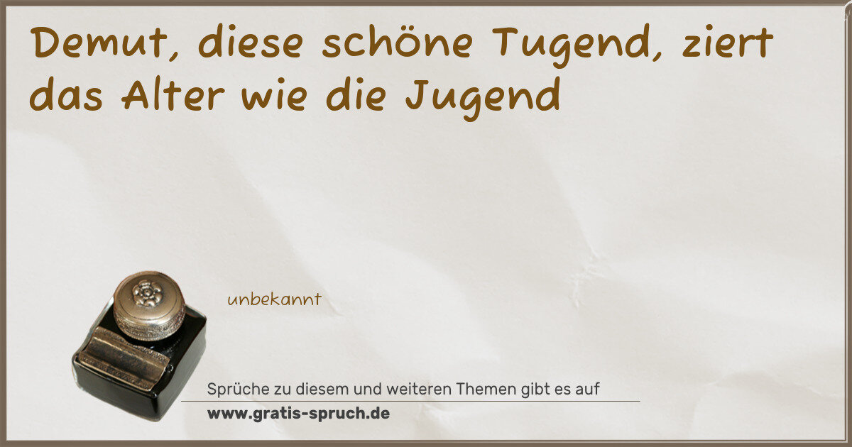 Demut, diese schöne Tugend, ziert das Alter wie die Jugend
