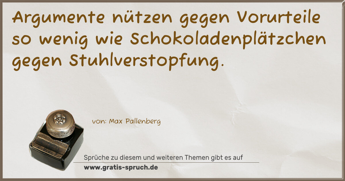 Argumente nützen gegen Vorurteile so wenig wie Schokoladenplätzchen gegen Stuhlverstopfung.