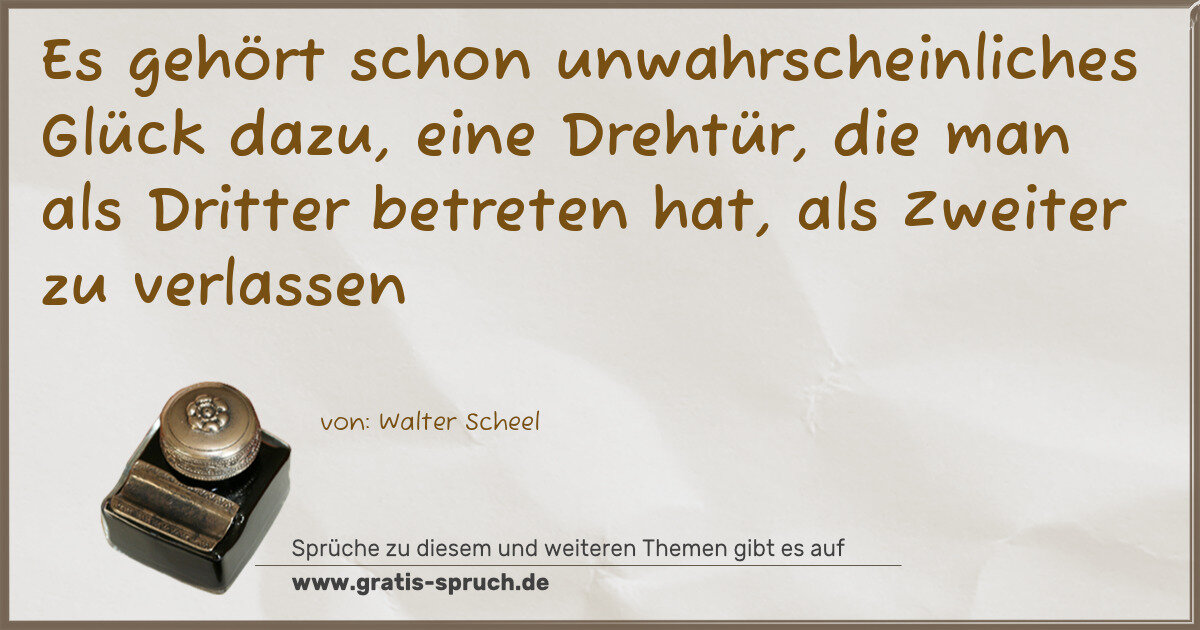Es gehört schon unwahrscheinliches Glück dazu, eine Drehtür, die man als Dritter betreten hat, als Zweiter zu verlassen