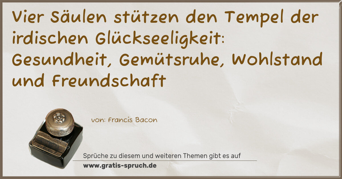Vier Säulen stützen den Tempel der irdischen Glückseeligkeit: Gesundheit, Gemütsruhe, Wohlstand und Freundschaft