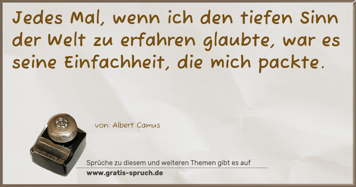 Jedes Mal, wenn ich den tiefen Sinn der Welt zu erfahren glaubte, war es seine Einfachheit, die mich packte.