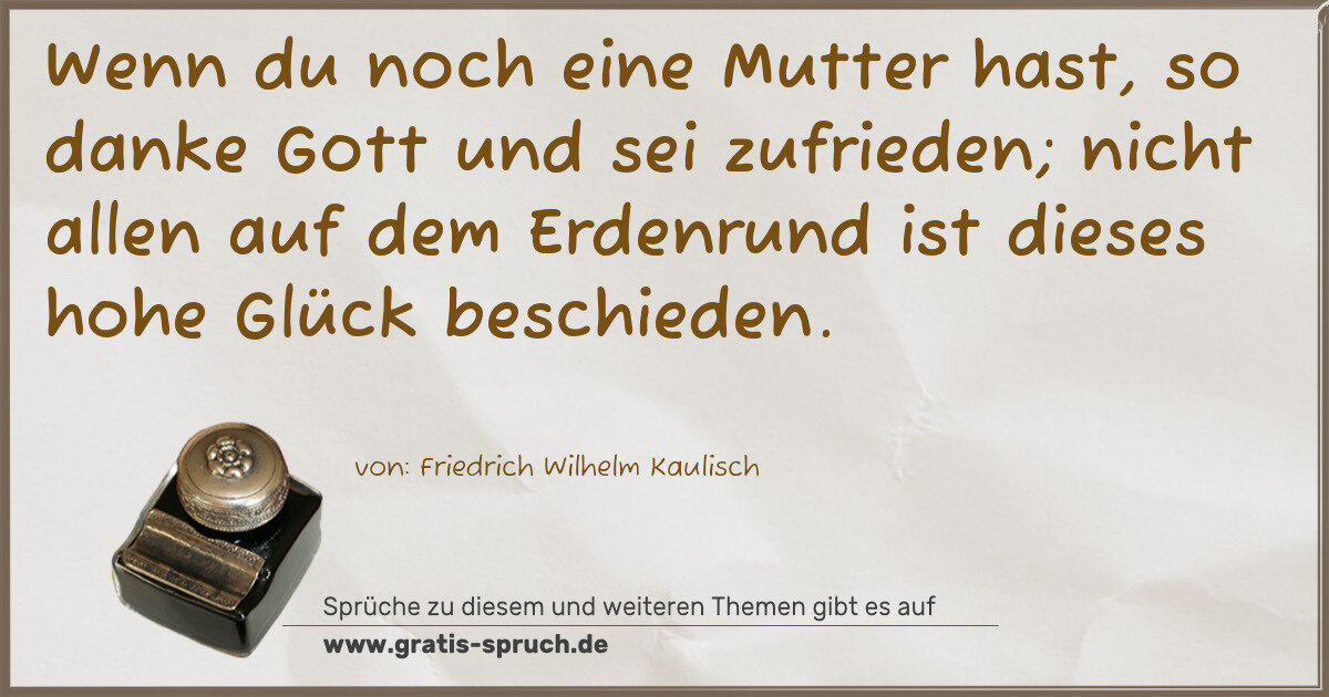 Wenn du noch eine Mutter hast, so danke Gott und sei zufrieden; nicht allen auf dem Erdenrund ist dieses hohe Glück beschieden.