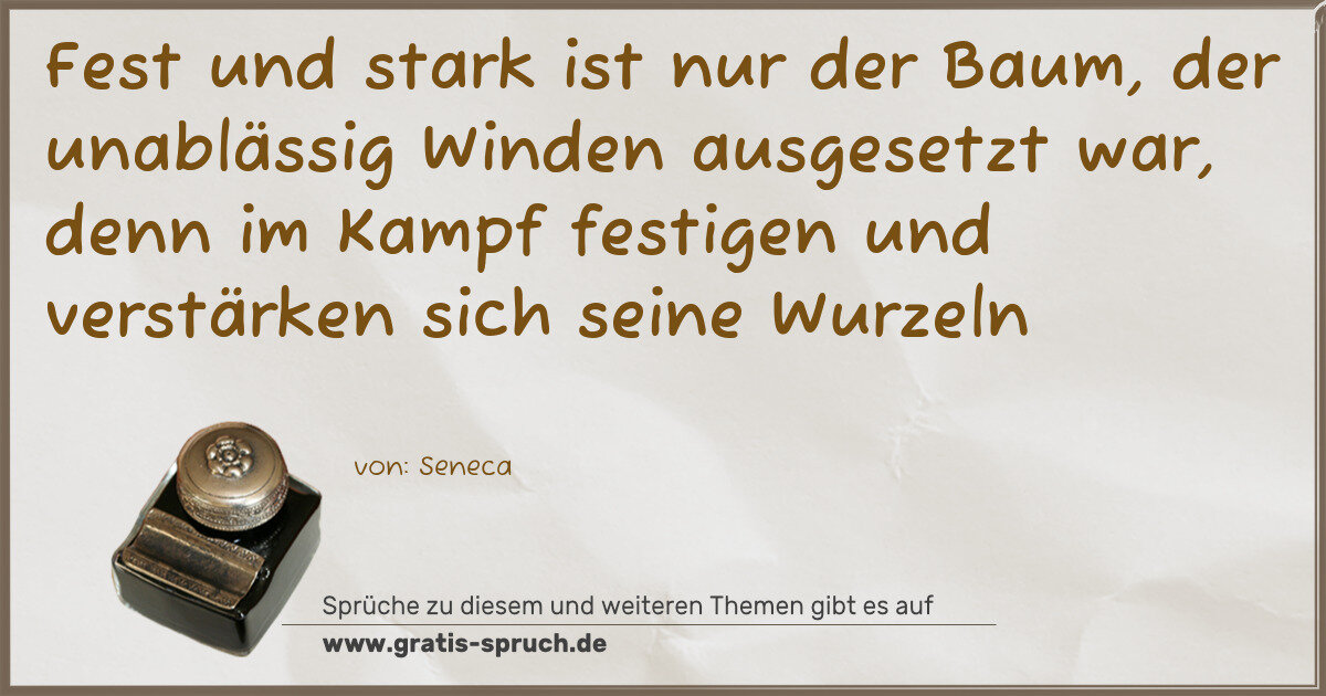 Fest und stark ist nur der Baum, der unablässig Winden ausgesetzt war, denn im Kampf festigen und verstärken sich seine Wurzeln