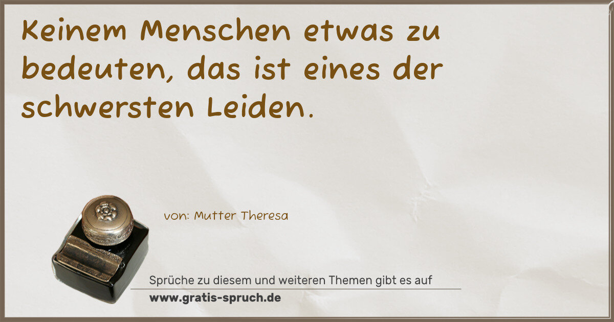 Keinem Menschen etwas zu bedeuten, das ist eines der schwersten Leiden.