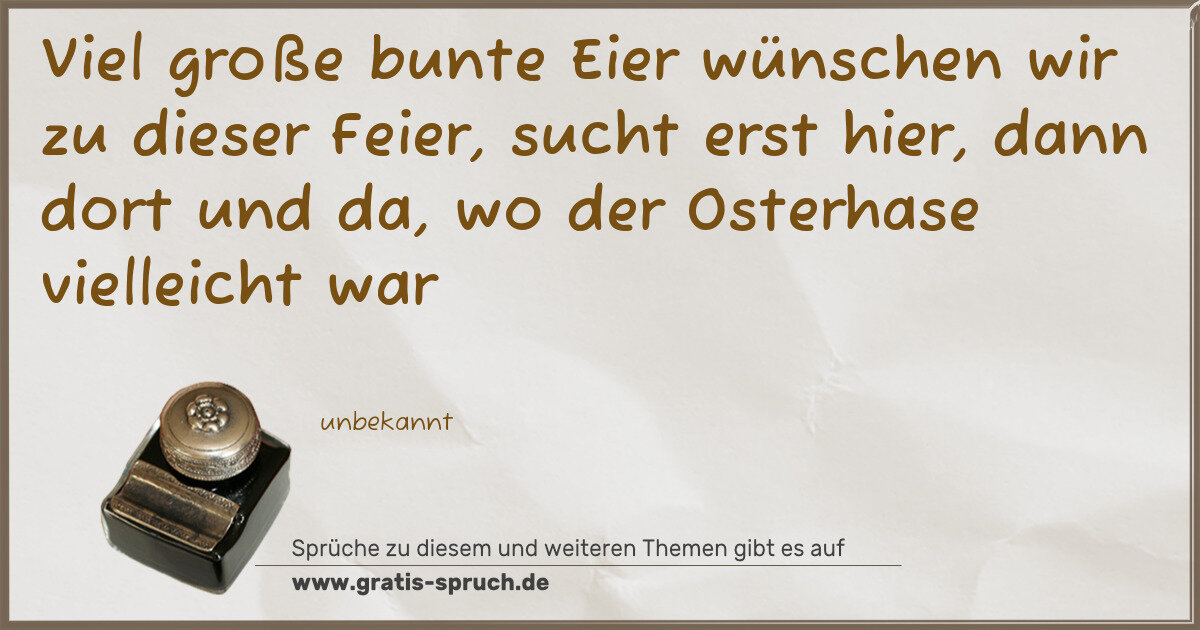 Viel große bunte Eier wünschen wir zu dieser Feier, sucht erst hier, dann dort und da, wo der Osterhase vielleicht war