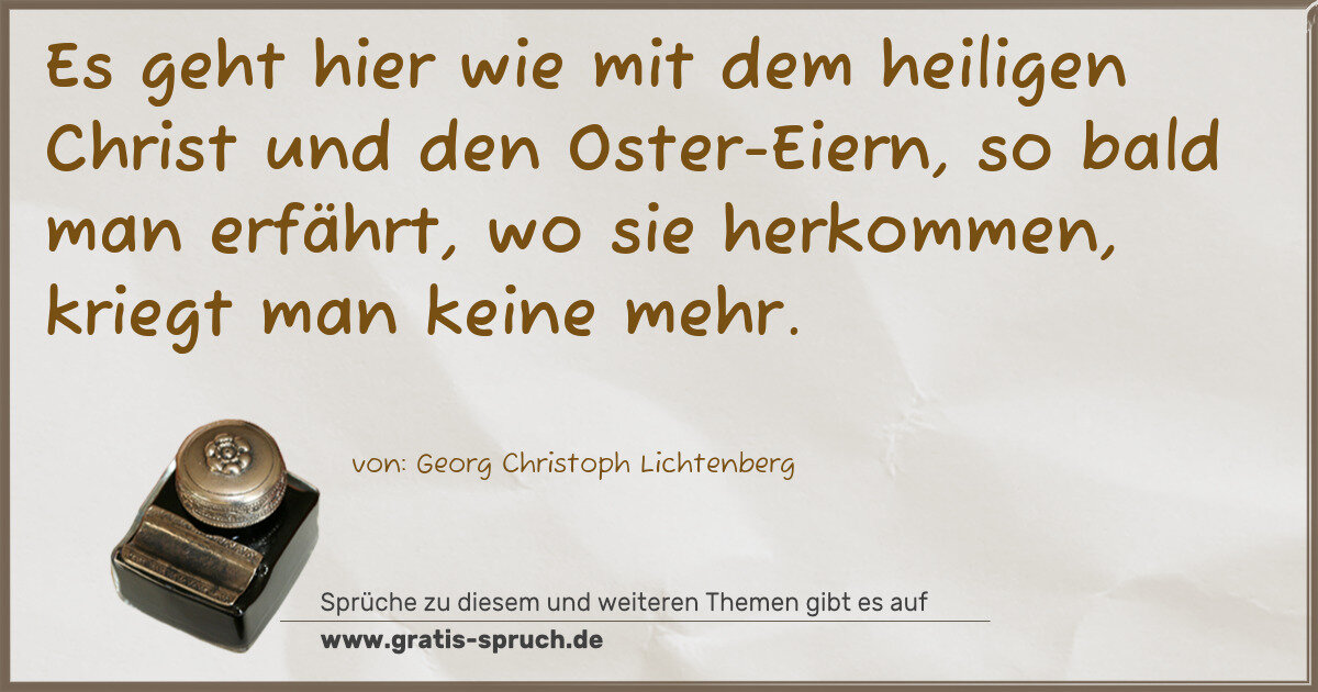 Es geht hier wie mit dem heiligen Christ und den Oster-Eiern, so bald man erfährt, wo sie herkommen, kriegt man keine mehr.