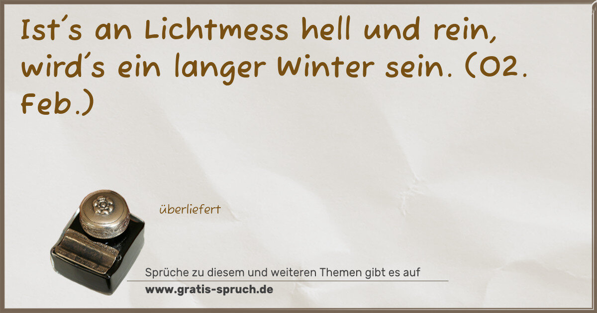 Ist's an Lichtmess hell und rein, wird's ein langer Winter sein. (02. Feb.)