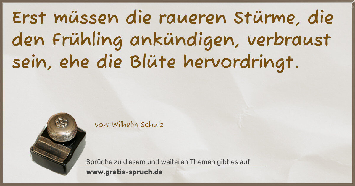 Erst müssen die raueren Stürme, die den Frühling ankündigen, verbraust sein, ehe die Blüte hervordringt.