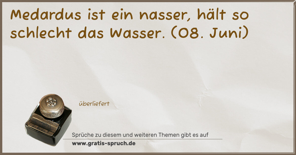 Medardus ist ein nasser, hält so schlecht das Wasser. (08. Juni)