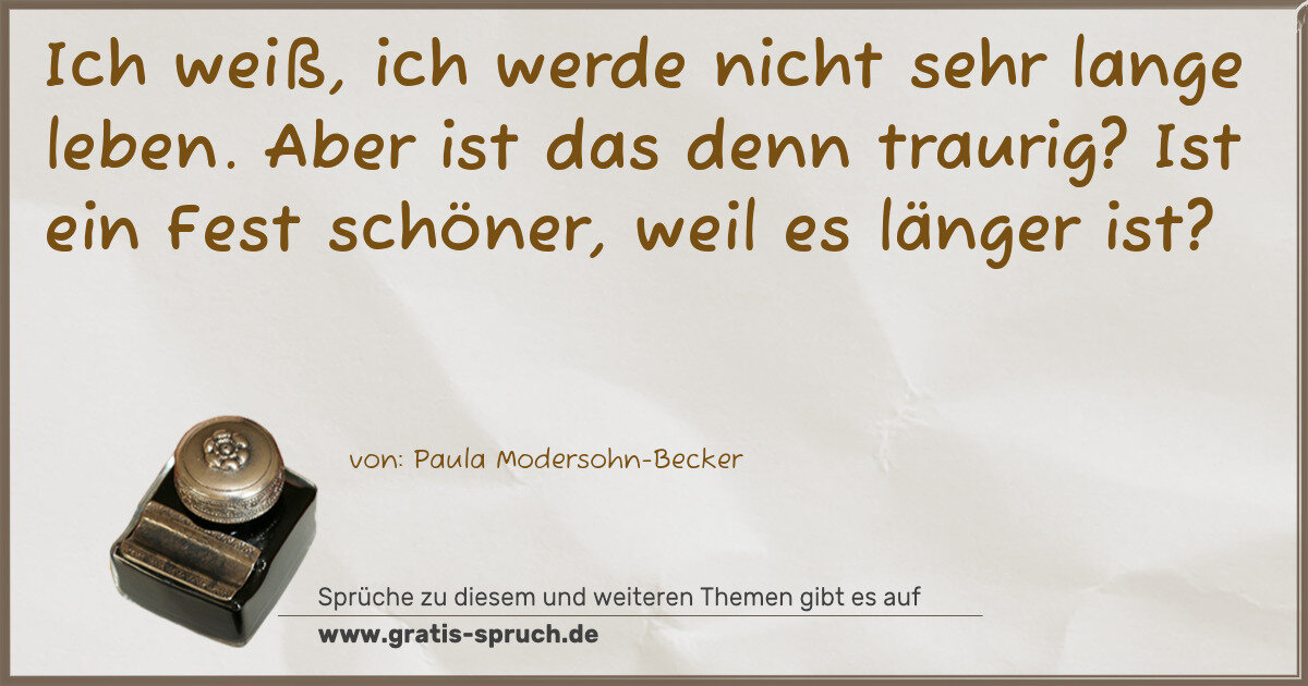 Ich weiß, ich werde nicht sehr lange leben. Aber ist das denn traurig? Ist ein Fest schöner, weil es länger ist?