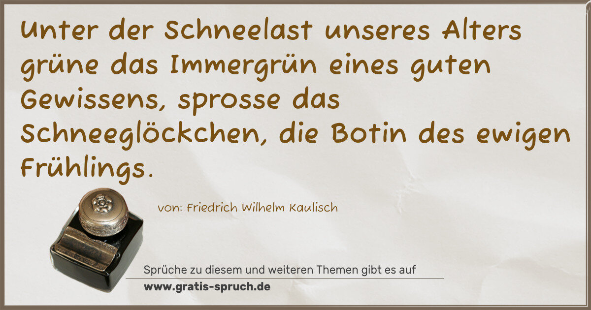 Unter der Schneelast unseres Alters grüne das Immergrün eines guten Gewissens, sprosse das Schneeglöckchen, die Botin des ewigen Frühlings.