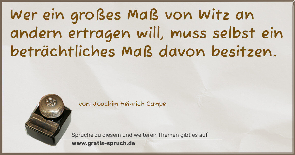 Wer ein großes Maß von Witz an andern ertragen will, muss selbst ein beträchtliches Maß davon besitzen.