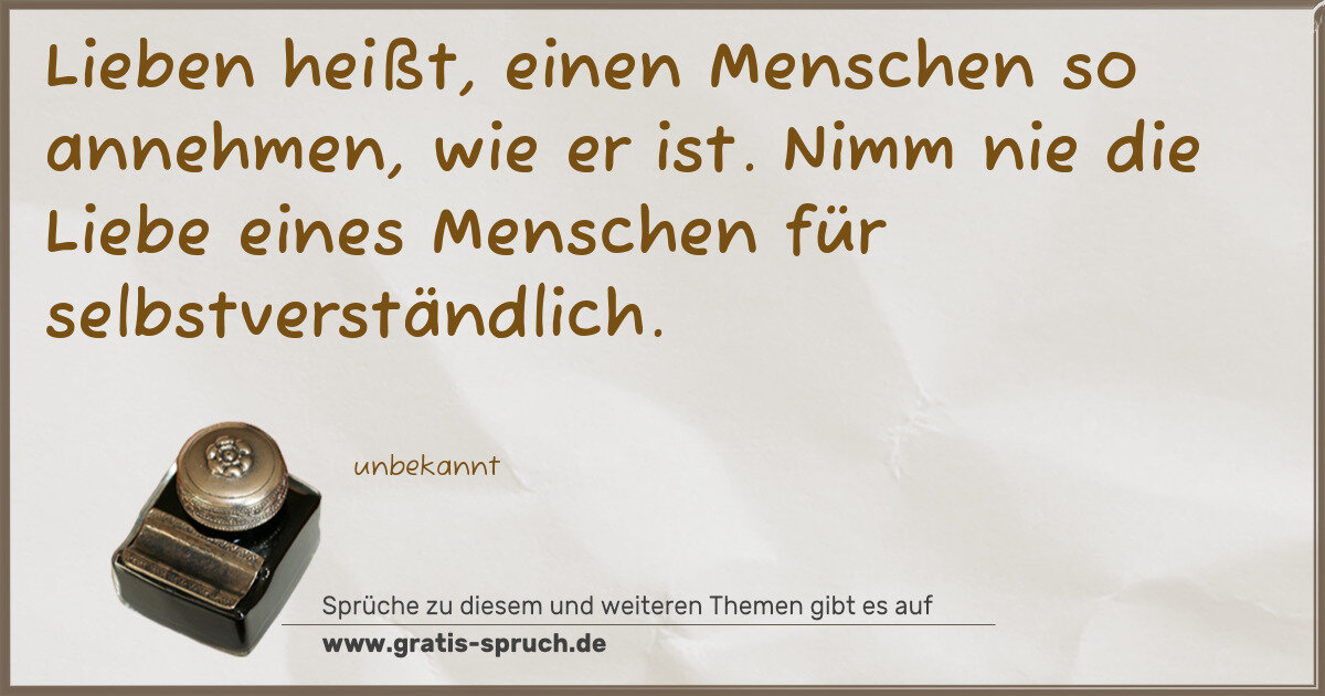 Lieben heißt, einen Menschen so annehmen, wie er ist. Nimm nie die Liebe eines Menschen für selbstverständlich.