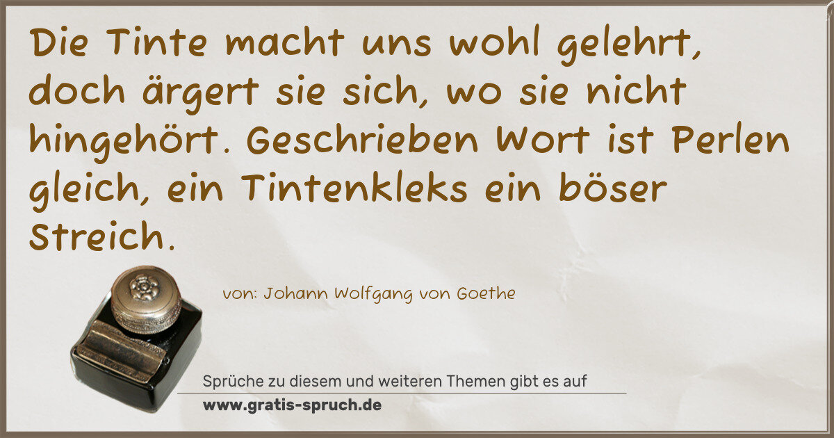 Die Tinte macht uns wohl gelehrt, doch ärgert sie sich, wo sie nicht hingehört. Geschrieben Wort ist Perlen gleich, ein Tintenkleks ein böser Streich.