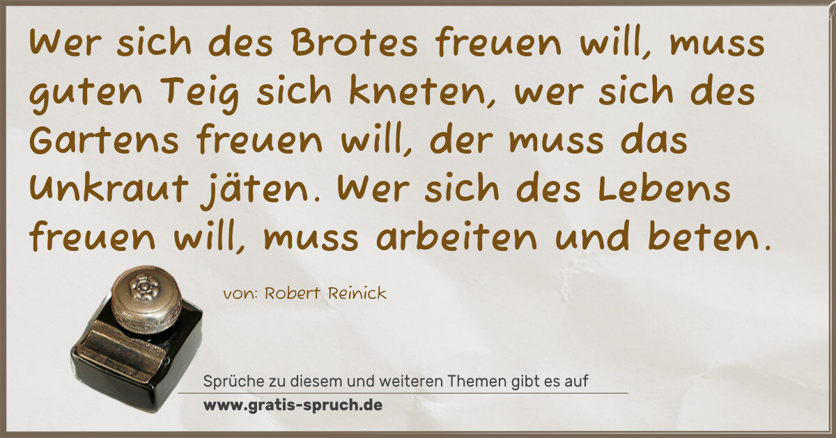 Wer sich des Brotes freuen will, muss guten Teig sich kneten, wer sich des Gartens freuen will, der muss das Unkraut jäten. Wer sich des Lebens freuen will, muss arbeiten und beten.