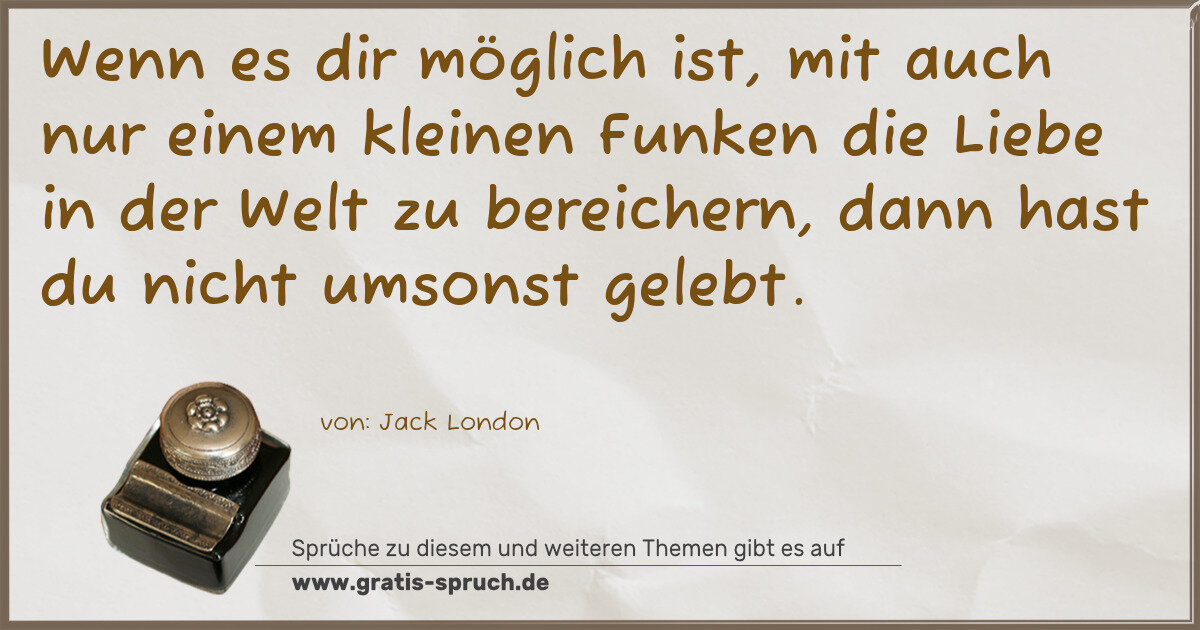 Wenn es dir möglich ist, mit auch nur einem kleinen Funken die Liebe in der Welt zu bereichern, dann hast du nicht umsonst gelebt.