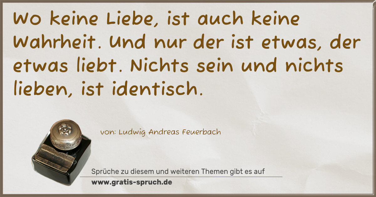Wo keine Liebe, ist auch keine Wahrheit. Und nur der ist etwas, der etwas liebt. Nichts sein und nichts lieben, ist identisch.
