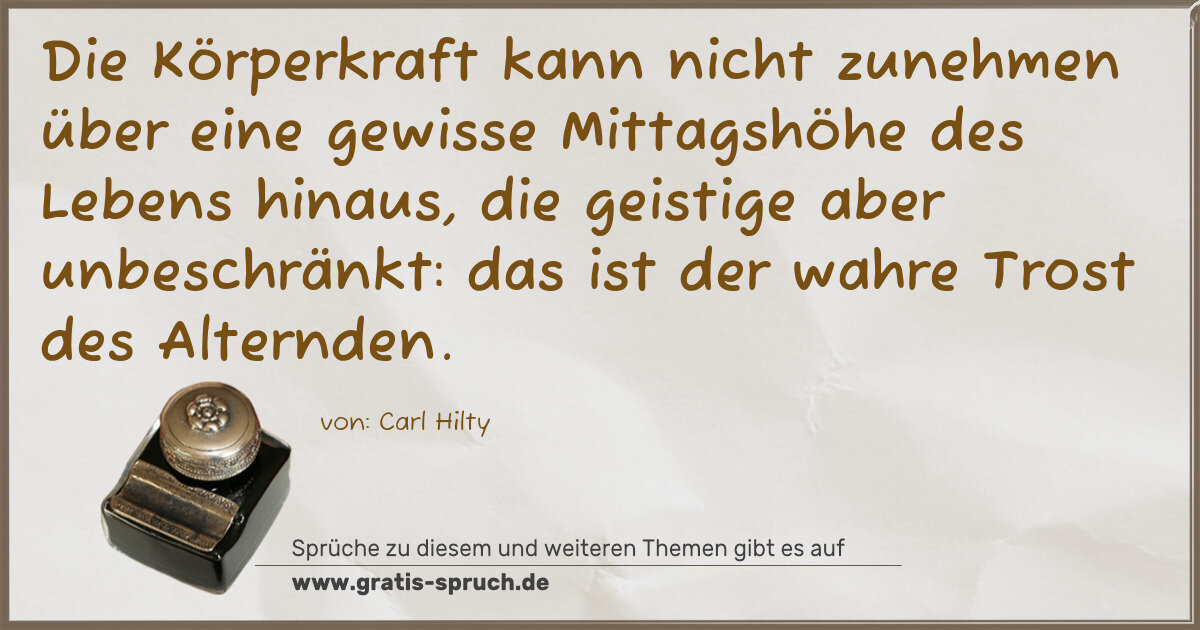 Die Körperkraft kann nicht zunehmen über eine gewisse Mittagshöhe des Lebens hinaus, die geistige aber unbeschränkt: das ist der wahre Trost des Alternden.