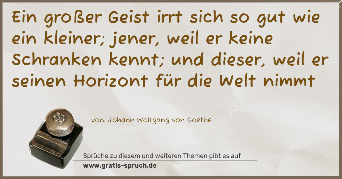 Ein großer Geist irrt sich so gut wie ein kleiner; jener, weil er keine Schranken kennt; und dieser, weil er seinen Horizont für die Welt nimmt