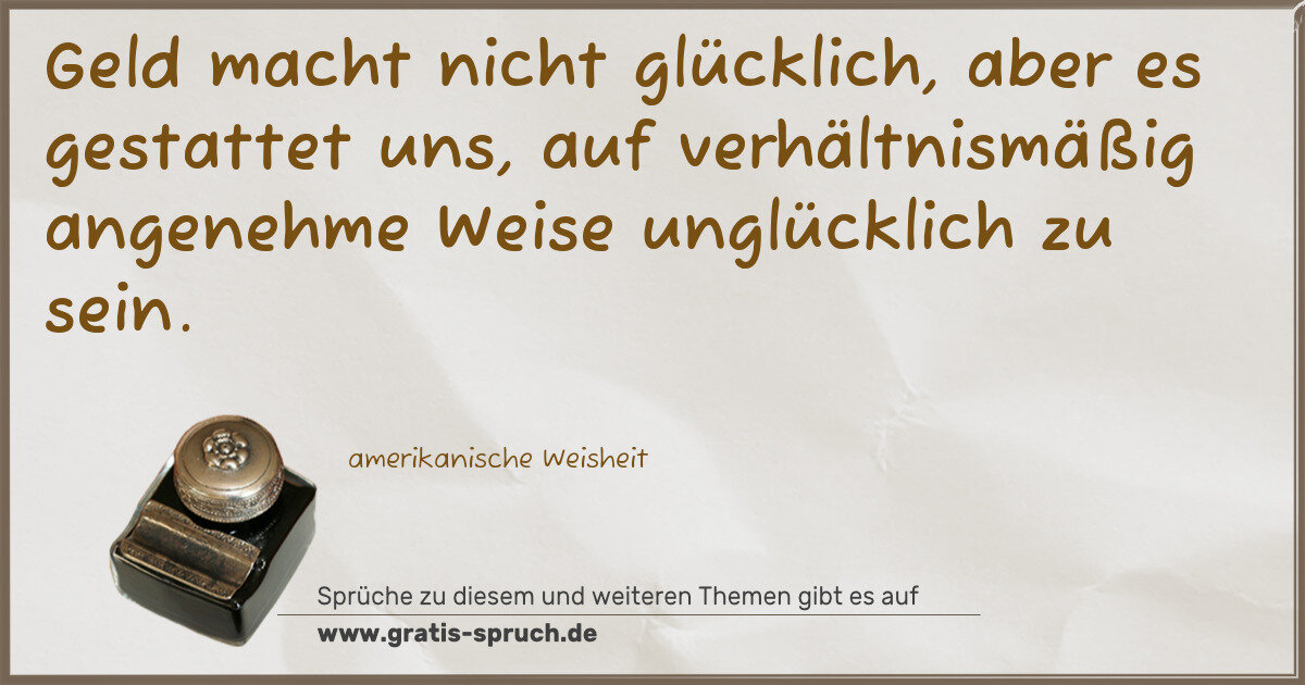 Geld macht nicht glücklich, aber es gestattet uns, auf verhältnismäßig angenehme Weise unglücklich zu sein.