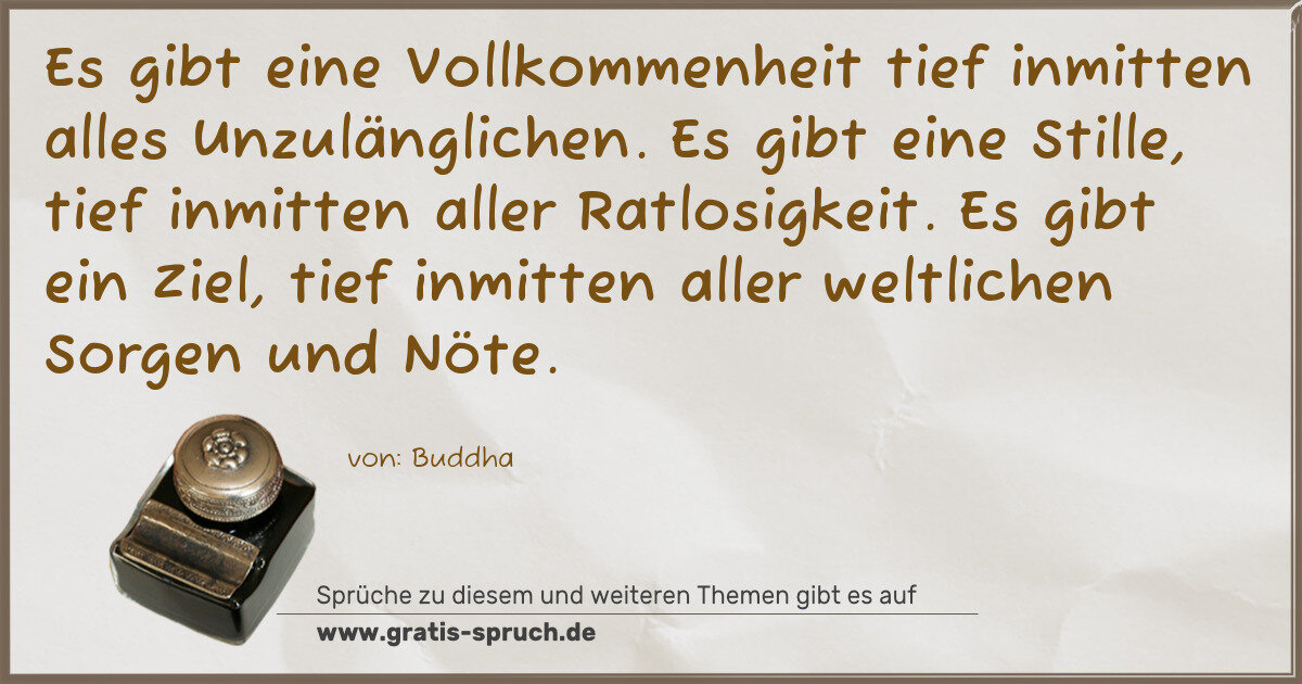 Es gibt eine Vollkommenheit tief inmitten alles Unzulänglichen. Es gibt eine Stille, tief inmitten aller Ratlosigkeit. Es gibt ein Ziel, tief inmitten aller weltlichen Sorgen und Nöte.