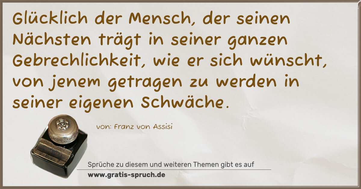 Glücklich der Mensch, der seinen Nächsten trägt in seiner ganzen Gebrechlichkeit, wie er sich wünscht, von jenem getragen zu werden in seiner eigenen Schwäche.
