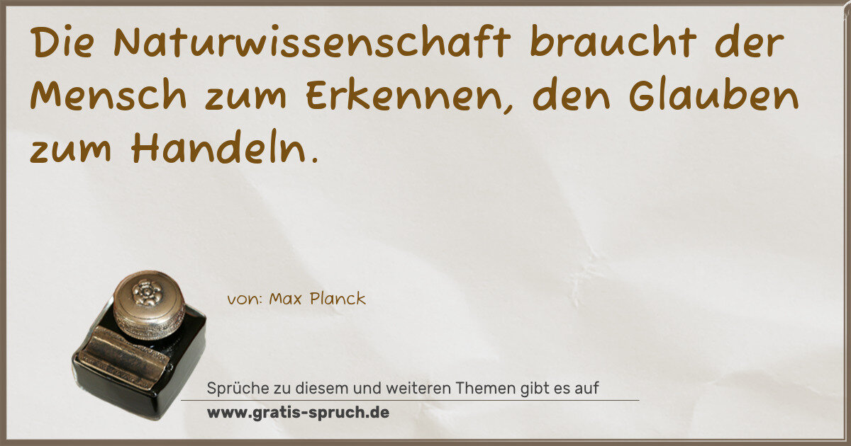 Die Naturwissenschaft braucht der Mensch zum Erkennen, den Glauben zum Handeln.