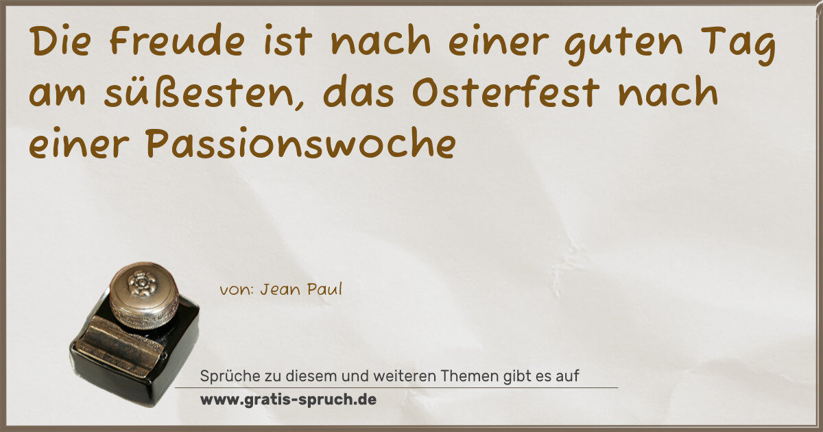 Die Freude ist nach einer guten Tag am süßesten, das Osterfest nach einer Passionswoche