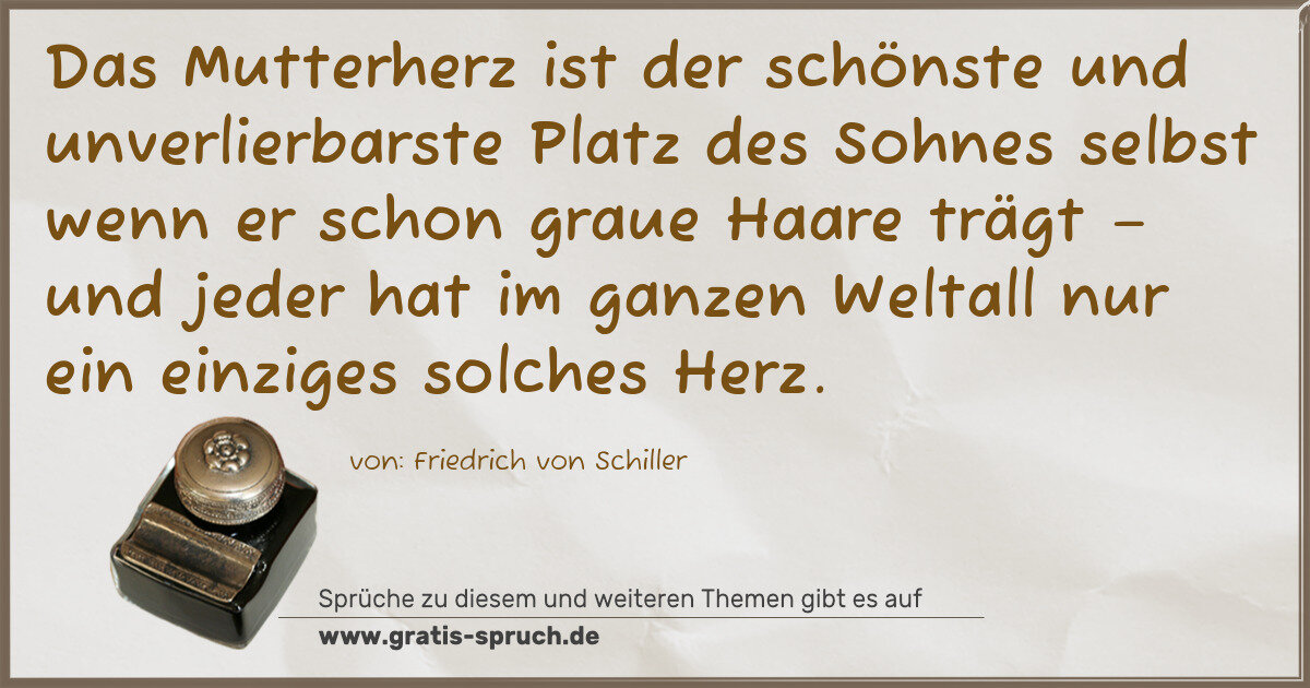 Das Mutterherz ist der schönste und unverlierbarste Platz des Sohnes selbst wenn er schon graue Haare trägt – und jeder hat im ganzen Weltall nur ein einziges solches Herz.