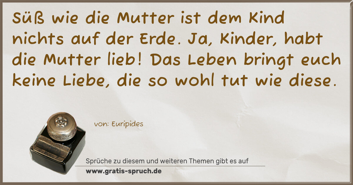 Süß wie die Mutter ist dem Kind nichts auf der Erde. Ja, Kinder, habt die Mutter lieb! Das Leben bringt euch keine Liebe, die so wohl tut wie diese.