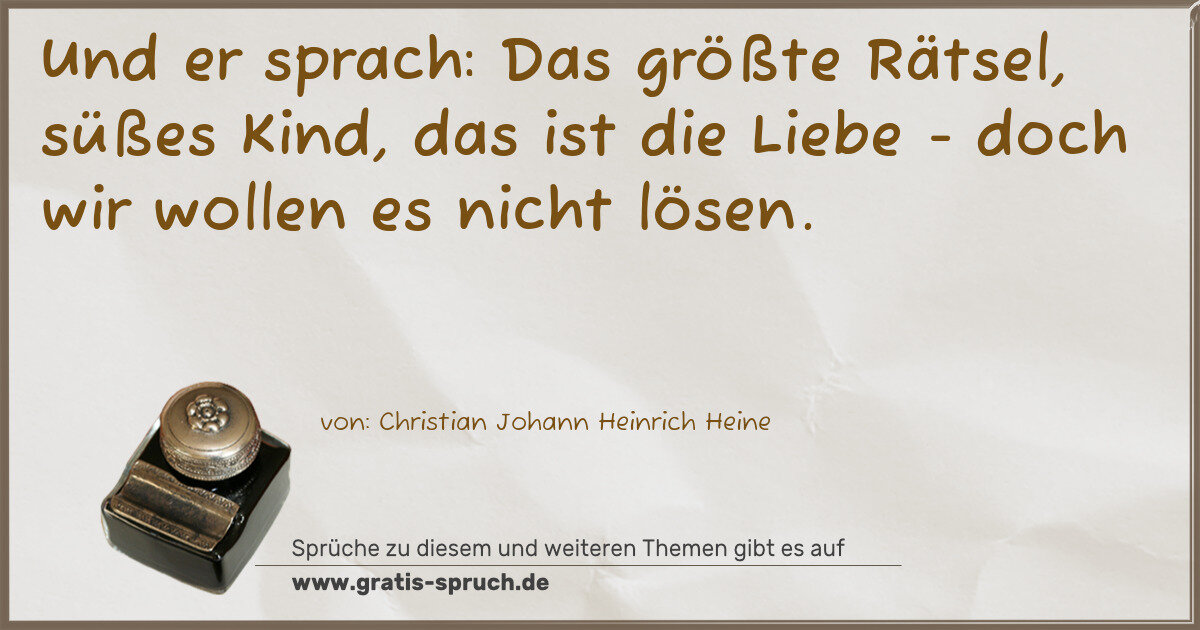 Und er sprach: Das größte Rätsel, süßes Kind, das ist die Liebe - doch wir wollen es nicht lösen.