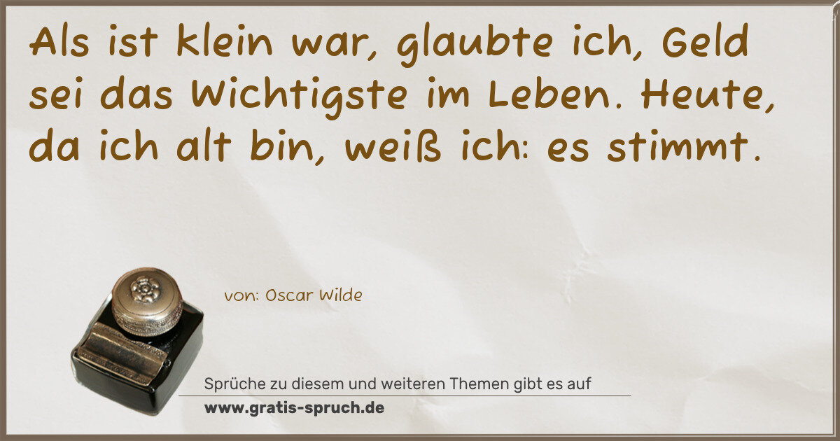 Als ist klein war, glaubte ich, Geld sei das Wichtigste im Leben. Heute, da ich alt bin, weiß ich: es stimmt.