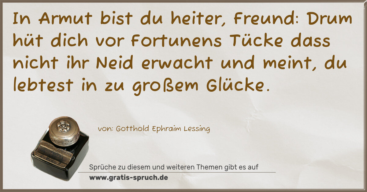 In Armut bist du heiter, Freund: Drum hüt dich vor Fortunens Tücke dass nicht ihr Neid erwacht und meint, du lebtest in zu großem Glücke.